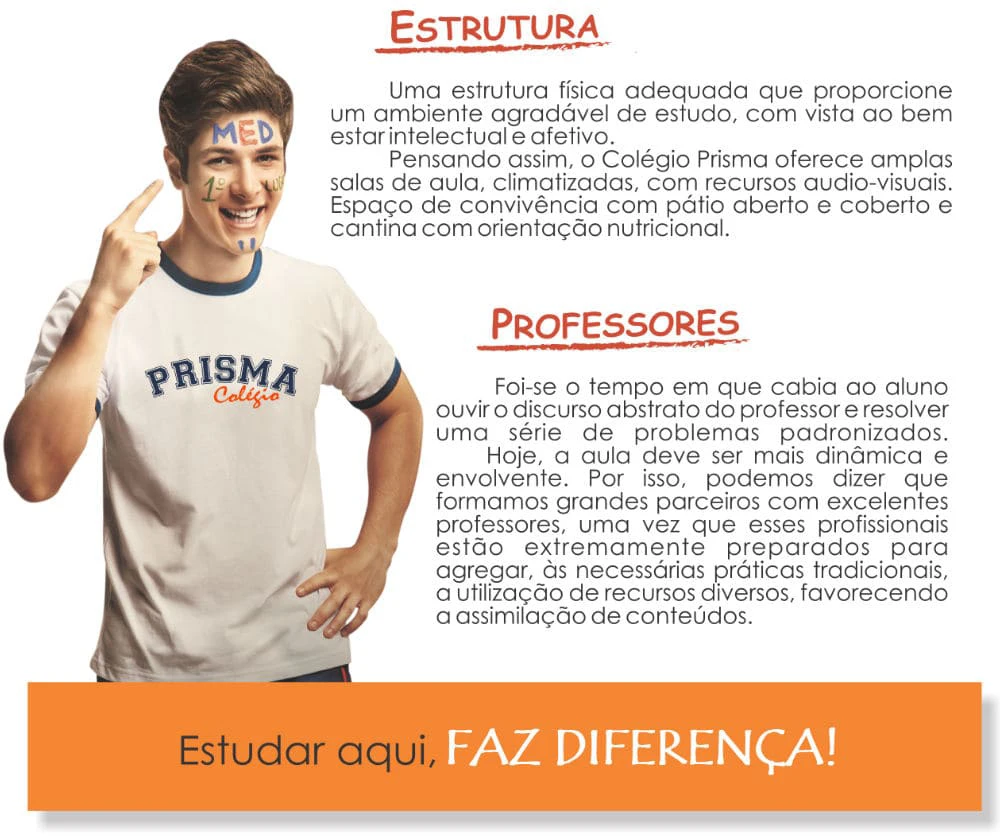 O Colégio Prisma preocupa-se em ofertar um ensino forte, trazendo conteúdos atualizados com aquilo que as Universidades estão exigindo.